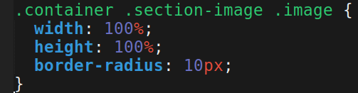 Vamos adicionar uma borda na nossa imagem, inserindo na classe dela a propriedade border-radius: 10px;
