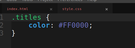 Sempre que quisermos adicionar CSS nas nossas tags, criamos uma classe CSS no arquivo de css, por exemplo, vamos deixar o título que está na tag h1 em vermelho, então, no nosso arquivo .css vamos criar a classe titles: