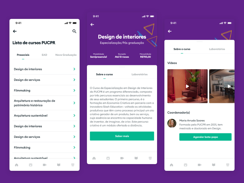 Além disso, houveram atividades com a Aliança Educativa, como o PUC Tour Virtual, para conhecer as estruturas da PUCPR, fazer bate-papo com os coordenadores de graduação para tirar dúvidas sobre o curso e a futura profissão, realizar workshops com experiências práticas da área de interesse e assistir palestras e eventos.