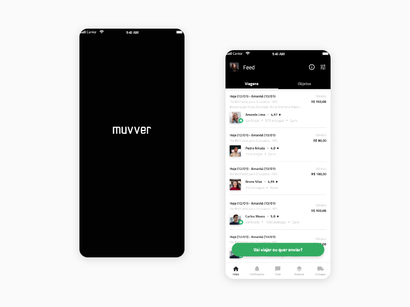 E se você vai viajar, basta inserir os dados da viagem e, se alguém precisar enviar algo, Muvver conecta vocês. Assim você consegue um extra para ajudar a bancar a viagem e ajudar alguém que precisa de carona.