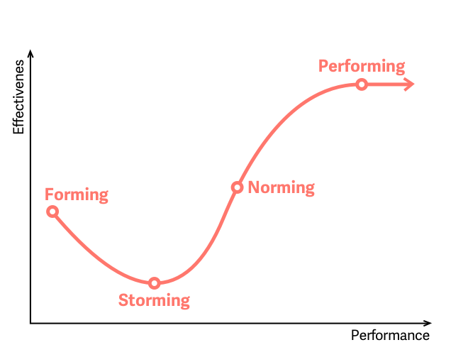 De forma resumida, o modelo foi criado em 1965 por Bruce Wayne Tuckman, neste estudo o desenvolvimento de equipes foi dividido em 4 estágios principais: Forming, Storming, Norming e Performing, ou em português: Formação, Confrontação, Normatização e Performance.