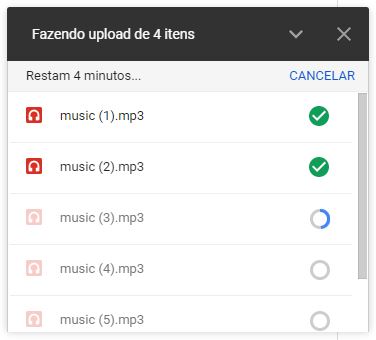 No caso do upload de músicas no Drive, o usuário consegue visualizar quais já foram e quais estão sendo carregadas ainda. No Trello, é possível ver quais tarefas já foram realizadas e quais estão pendentes.