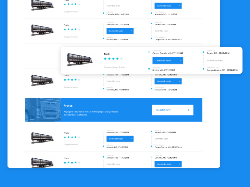 O app é uma plataforma para o pecuarista fazer pedidos de frete e escolher o melhor preço e transportadora. Ainda mais, é possível acompanhar os caminhões rastreados, e desfrutar da segurança e tranquilidade de ter toda a carga assegurada.