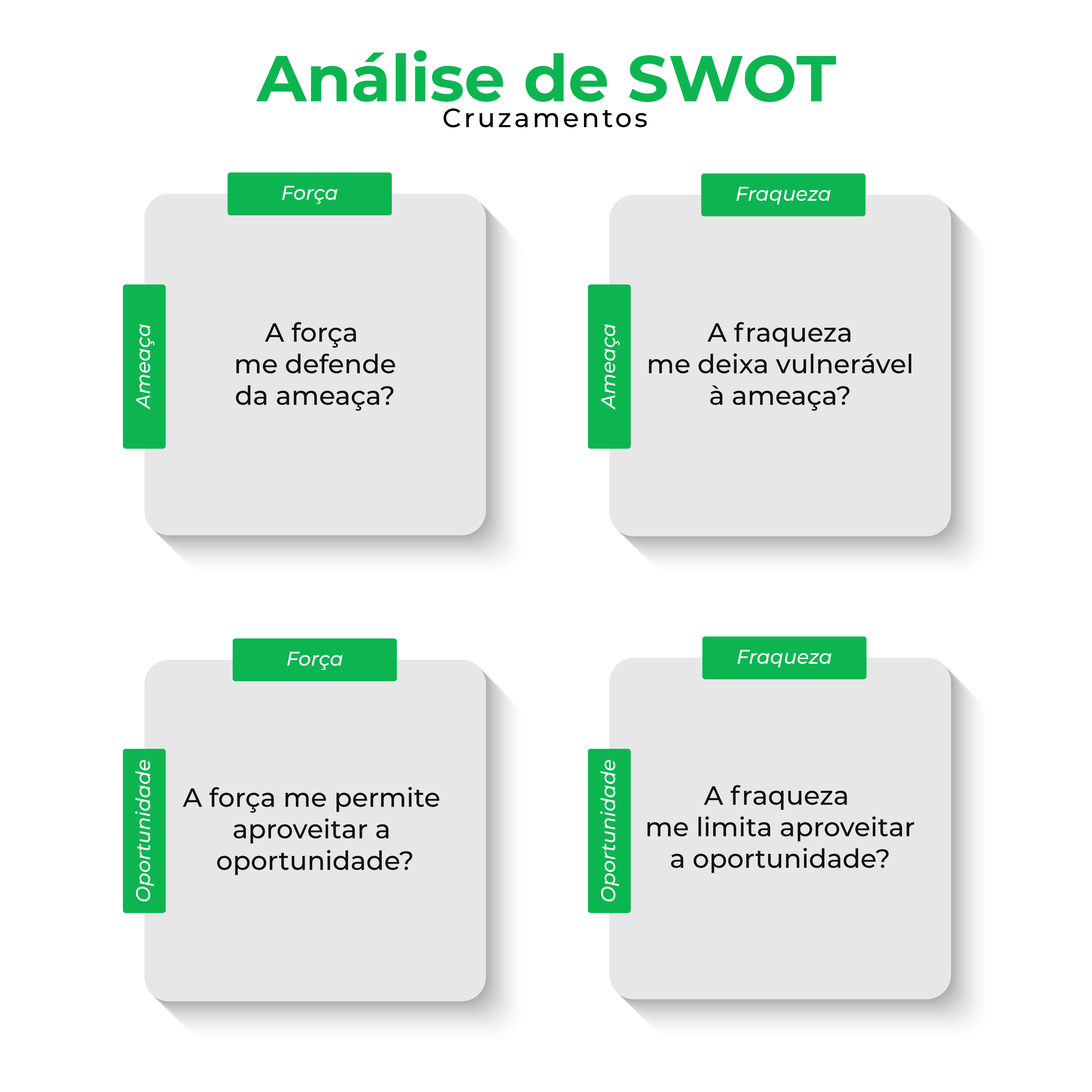 O cruzamento é o momento de avaliar quanto cada ponto interfere ou não a empresa, de acordo o planejamento estratégico.
