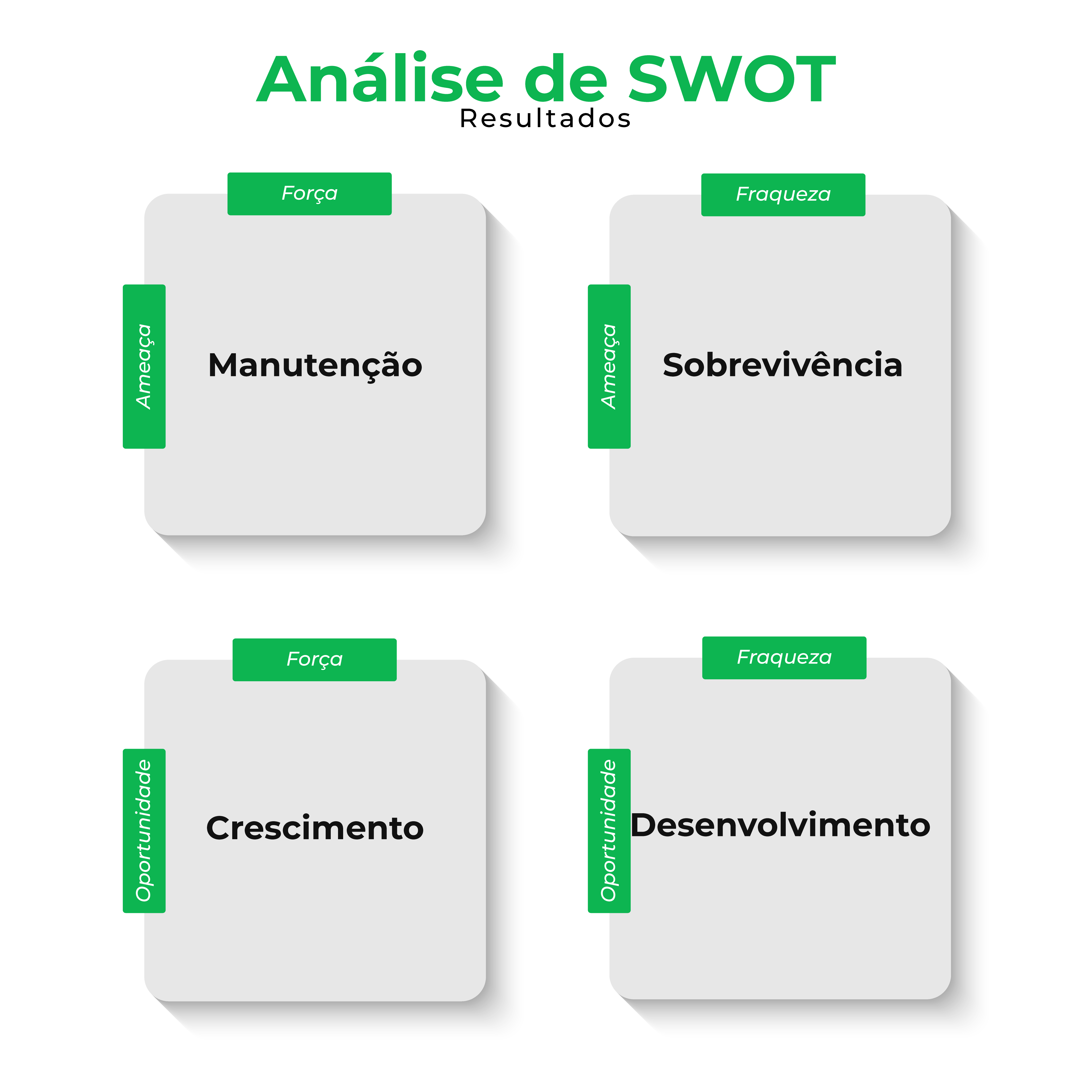 Depois do resultado dos cruzamentos, se soma todos os tópicos e o resultado posiciona a empresa em um dos quadrantes: sobrevivência, manutenção, crescimento e desenvolvimento.