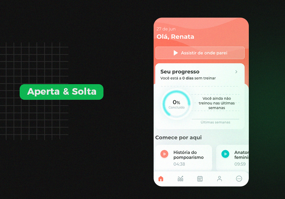 Desejando inserir a rotina de exercícios na vida da mulher brasileira e facilitar o acesso ao seu curso Cátia, juntamente com seus sócios, lançou o Aperta & Solta, um app que possibilita que a usuária se conheça, se sinta mais confiante e bem-resolvida através de treinos de pompoarismo, vídeo aulas e lembretes diários.