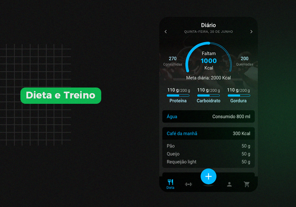 Para ajudar a manter a motivação, o app gera feedbacks, incluindo dados que auxiliam no comprimento da meta, além de avaliações sobre a alimentação do usuário.