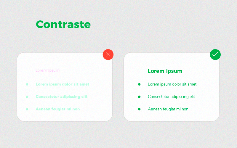 Assim como no conceito anterior, o contraste também não é uma caraterística somente de cores. Ele pode ser trabalhado também em pesos, tamanhos, texturas entre outros.