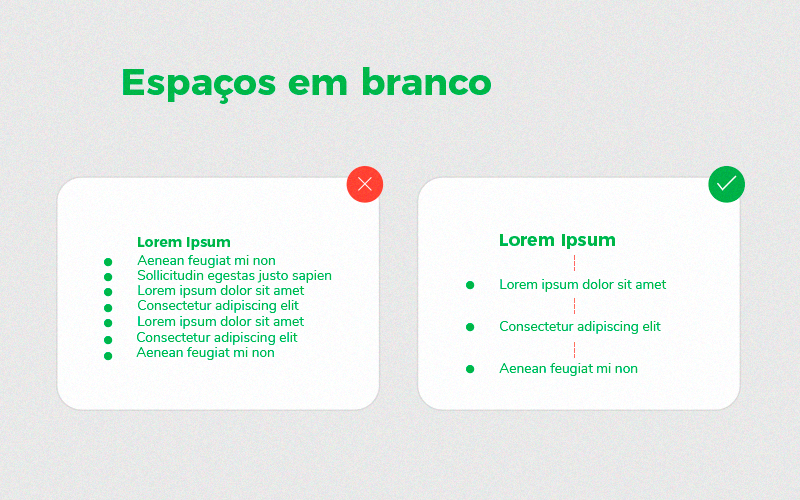 Os espaços em branco também são importantes. São eles que trazem a sensação de um visual mais limpo, criando uma área de respiro no layout onde o olhar do seu leitor poderá descansar.