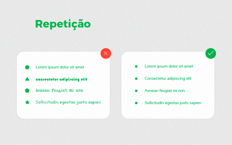 Esse princípio é responsável por trazer uma unidade estética através da repetição de um ou mais elementos, trazendo consistência e criando uma identidade visual.