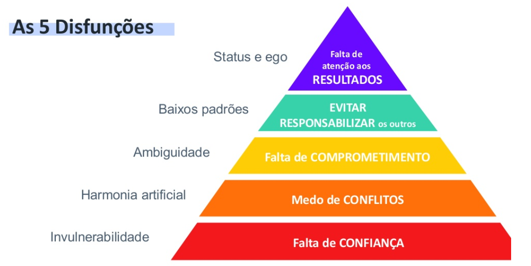 Patrick Lencioni é autor, consultor e fundador da The Table Group e com sua experiência trabalhando com vários executivos, ele observou algumas características inter-relacionadas que podem atrapalhar o desempenho de um time, bem como limitar a capacidade delas de trabalharem juntas.